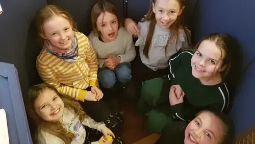 Børnekoret øver hver torsdag kl. 15-16 i Tornby skoles aula.