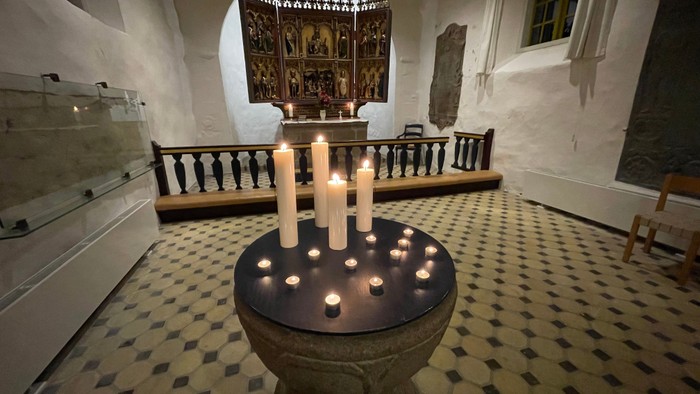 I er alle hjerteligt velkomne. Uanset, om I aldrig har været i kirken før eller I kender hver en krog i kor og skib. Vi går ind i mørket sammen, i sang og i stilhed.